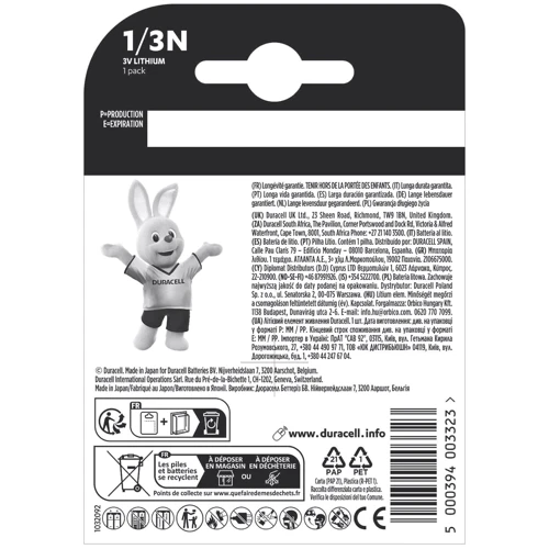 Аксессуары для Специальная литиевая батарейка Duracell 1/3N 3V (2L76/CR1/3N/CR11108) 1 шт (5000394003323)