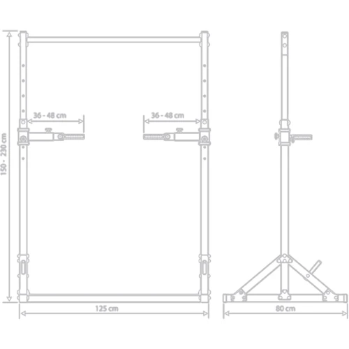 Чтобы оборудование в вашем домашнем тренажерном зале позволяло проводить безопасные и здоровые тренировки, вы должны обеспечить высокое качество тренажеров. Наша планка изготовлена из высококачественной польской стали. Благодаря массивной раме из профиля 40х40 мм штанга будет оставаться устойчивой даже во время очень интенсивных тренировок. Расположенные по диагонали опоры стабилизируют всю конструкцию и предотвращают вибрации. Для сборки мы использовали винты, а не сварные швы. Вы можете легко разобрать всю вещь и хранить - даже в разобранном виде планка занимает мало места! Вы можете настроить уровень штанги в соответствии с ростом пользователя или типом выполняемого упражнения. Минимальный рост 155 см, максимальный 242 см. Выбрав высоту планки, закрепите ее шурупами - такое решение гарантирует безопасность и надежное соединение профилей. Ищете отличное, компактное и универсальное оборудование для домашнего тренажерного зала? С нашей штангой с дополнительным поручнем для подтягиваний вы сможете заниматься дома как профессионал!