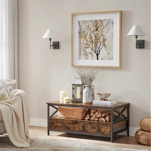 Журнальный столик создан на основе потребностей современного человека. Его размеры (100х55х45см) обеспечивают достаточно места для всего необходимого: от чашки кофе до ноутбука, пульта от телевизора или даже подноса с закусками. Два выдвижных ящика станут идеальным местом для хранения мелких предметов, таких как пульты, книги, журналы или декодер. Это помогает поддерживать порядок, а универсальная полка под столешницей отлично подходит для хранения дополнительных вещей, таких как посуда во время праздников или вазы с фруктами, добавляя удобства и комфорта в ваш дом.