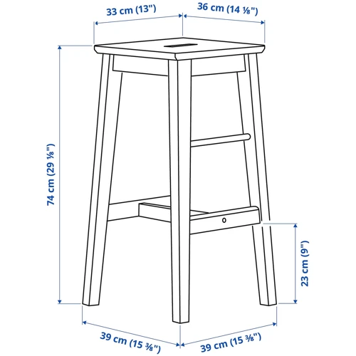 Отверстие в табурете позволяет легко переносить его. Массив дерева – долговечный, натуральный материал.