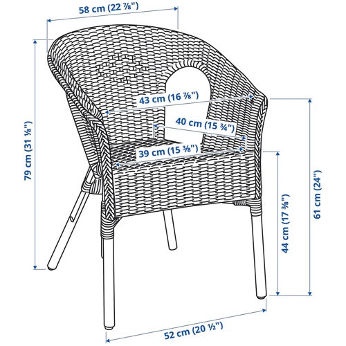 Изготовлен из плетеного вручную ротанга - яркого материала, который делает каждый стул AGEN уникальным. Легкий, на нем удобно сидеть и его легко переносить благодаря небольшому весу. Отличный способ пригласить природу в свой дом.
