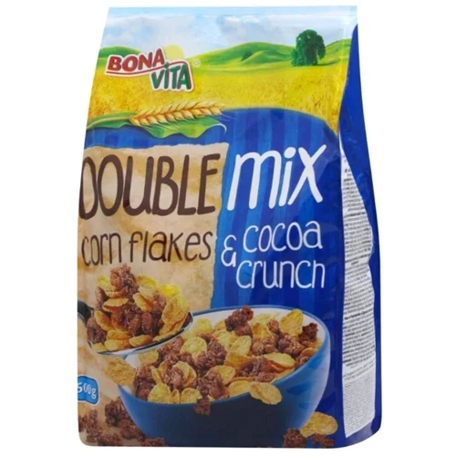 Сухой завтрак Bona Vita - это уникальное сочетание текстур и вкусов, которое обеспечит вас замечательным началом дня. Этот микс объединяет кранчи с какао и кукурузные хлопья, создавая двойной хрустящий опыт, который приносит удовольствие при каждом укусе. Кранчи с какао придают завтраку насыщенный шоколадный аромат, что делает его особенно привлекательным для любителей шоколада.