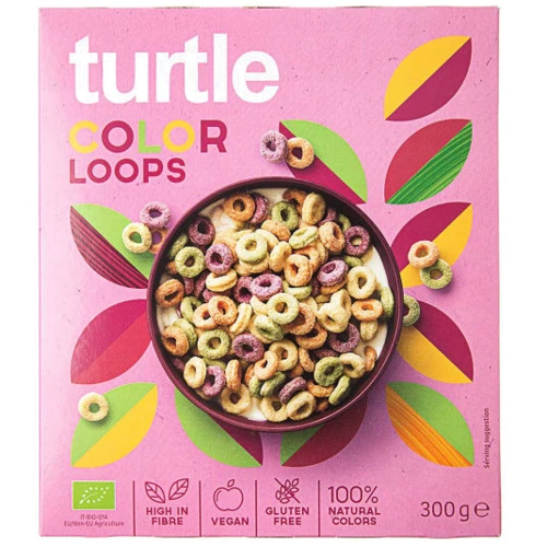 мука кукурузная, мука рисовая, овес без глютена, сахар тростниковый, отруби кукурузные, красители: концентраты цветков сафлора, спирулина, редька, лимон, батат), соль морская