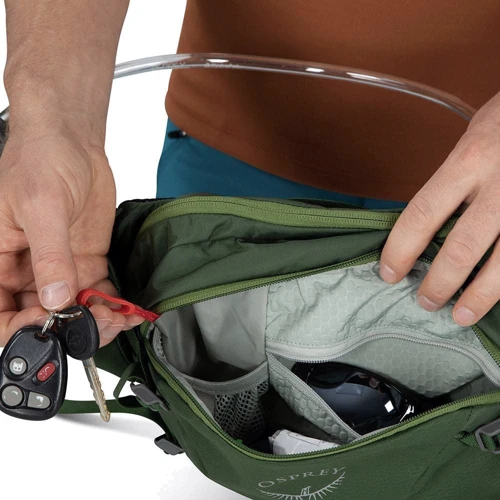 Удобная поясная сумка на 7 л от бренда Osprey - обновленная модель 2021 года. Отличный выбор для велосипедистов, сумка оснащена внутренним отделом для питьевой системы (1,5 л). На поясе есть магнит для закрепления трубки от питьевой системы. Спинка AirScape обеспечивает комфорт и воздухопроницаемость. Есть вместительный основной отдел, два боковых кармана на молниях и один фронтальный, защищенный карман для очков или смартфона. На поясной сумке есть светоотражающие элементы для безопасного передвижения в темное время суток. Питьевая система идет в комплекте.