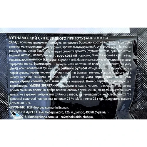 Состав: Лапша быстрого приготовления (рисовая мука, крахмал тапиоки, вода), соль поваренная, мальтодекстрин, сахар белый, крахмал кукурузный, смесь вкусовая «Телятина» (соль поваренная, сахар белый, усилители вкуса и усилители вкуса инозинат натрия), мальтодекстрин, соус соевый порошок, глюкоза пищевая кристаллическая гидратная, ароматизаторы (сельдерей и изделия из нее), красители (кармуазин, экстракт паприки, тартразин, консо, индигокармин - могут оказывать негативное влияние на активность и внимание детей)), мя «Хондаши», кинза сушеная, лук порей сушеный, перец красный «Чили», семена фенхеля молотые, корица молотая, корень имбиря молотый, гвоздика молотая, бадьян молотый.