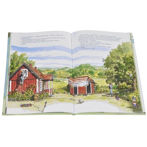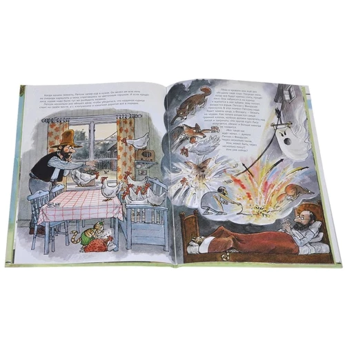 Петсон, его друг котенок Финдус и их куры мирно живут в маленькой шведской деревушке. Но однажды в деревне появилась лиса. И стала таскать кур. Сосед Густавсон решил пристрелить лису. О том, как Петсон и Финдус спасали кур от лисы, а лису от соседа, рассказывается в этой презабавной книжке.