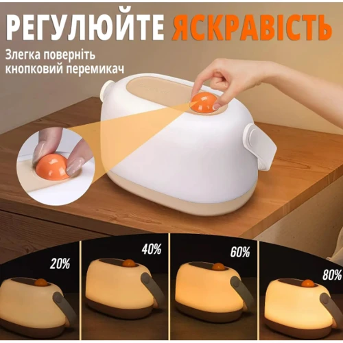 Изготовлен из безопасных материалов игрушечного класса – ABS и PC, на 100% безопасен и дружен для вашего ребенка. Теплое освещение 3000K защищает глаза, поэтому он отлично подходит как ночная лампа, светильник для кормления грудью и лампа для сна. Технология светодиодов делает поверхность светильника прохладной на ощупь, что безопасно для малышей.