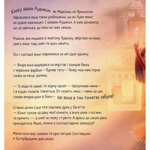 Жила собі кішка. Звали її не Маркіза, не Принцеса — просто Рудик. Кішка-бешкетуха завдавала чимало клопоту всій родині. Та чи насправді від неї не було жодної користі? Здається, що улюблена справа Рудика — дрімати на траві під черешнею. Але тільки-но щось трапляється, кішка вже поспішає на допомогу. Справжній супергерой із пухнастою мордочкою та гострими кігтями!