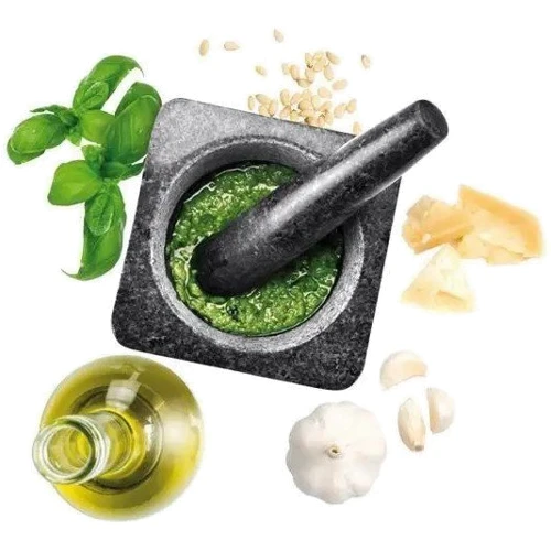 Пестик и ступка выполнены из высококачественного натурального гранита, который прост в уходе и не впитывает запахи.