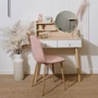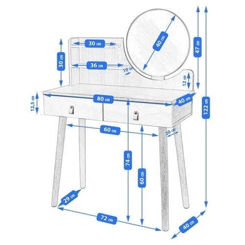 Ящики, идеально подходящие для косметики, бижутерии, письменных приборов и других мелких предметов, которые наконец-то найдут свое место. Удобные полки для повседневных вещей, таких как крем для рук, духи, аксессуары для волос. Столешница, она также позволяет использовать туалетный столик в качестве письменного стола.