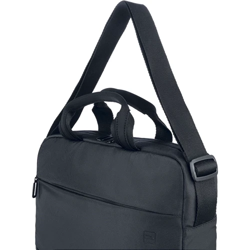 Легкая сумка из ткани, изготовленной из переработанного пластика. Имеет компактный, современный дизайн. Подходит для ноутбуков и MacBook до 14 дюймов. Оснащена удобным центральным отделением, внутренним карманом для ноутбука и внешним карманом на молнии. Также имеется ремень для крепления на чемодан и регулируемый плечевой ремень.