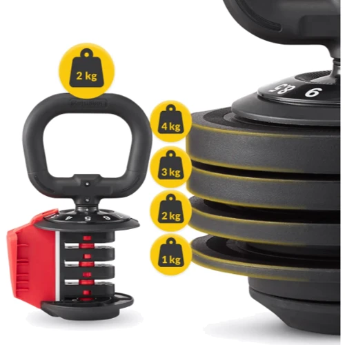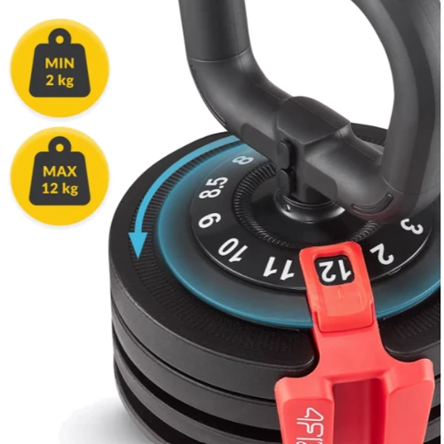 Гиря з регульованою вагою від польського бренду 4FIZJO – це класичний силовий тренажер у новій компактній версії. Вона ідеальна для домашнього тренажерного залу, адже заощаджує до 80% місця порівняно зі стандартними гирями. Користувачеві доступні різні комбінації ваги з невеликим кроком від 2 до 12 кг. Прогресія навантаження дуже важлива для силових вправ, оскільки дозволить отримати найкращі результати. Крім того, завдяки широкому діапазону регулювання ваги одним снарядом можна опрацювати різні групи м'язів. Введіть спортивну активність у свій щоденний розклад та почніть тренуватися вже сьогодні!