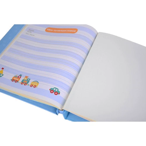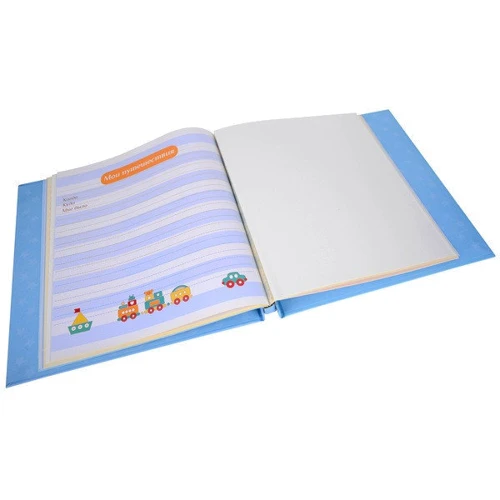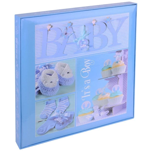 Альбом для новонароджених, анкетний у подарунковій коробці на 20 сторінок розміру 32х32 см, що самоклеяться. Фотографії лягають на жорстку сторінку альбому та накриваються плівкою, яка міцно тримає фотографії в альбомі. Можна розмістити фотографії у різному положенні, можна поєднувати фотографії кількох форматів на одній сторінці. Прозора плівка надійно захищає фотографії. Обкладинка ламінований картон. Розмір обкладинки 33х34 см.