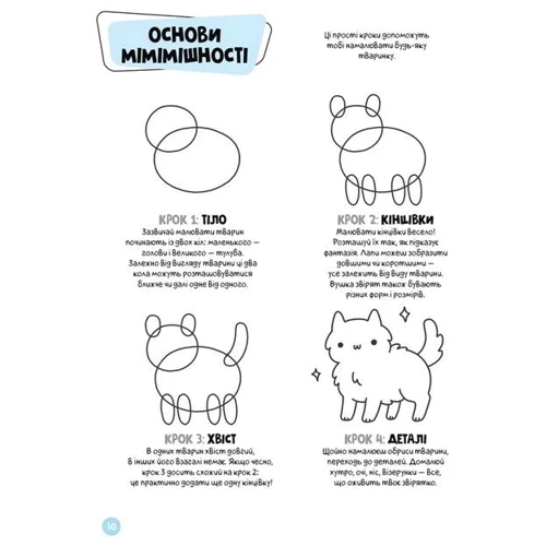 Домашнi улюбленцi, мешканцi лiсу, джунглiв, савани та морських глибин — на сторінках цієї книжки ви навчитеся малювати майже 100 мімімішних тваринок. Просто оберіть улюблені інструменти для малювання і повторюйте кожен крок за художницею Анжелою Нґуєн. Її поради допоможуть вам перетворювати звичайні фігури на милі зображення лапусиків лише за допомогою кількох штрихів. А щоб ви могли удосконалити свої художні навички, Анжела підготувала для вас цікаві творчі завдання.