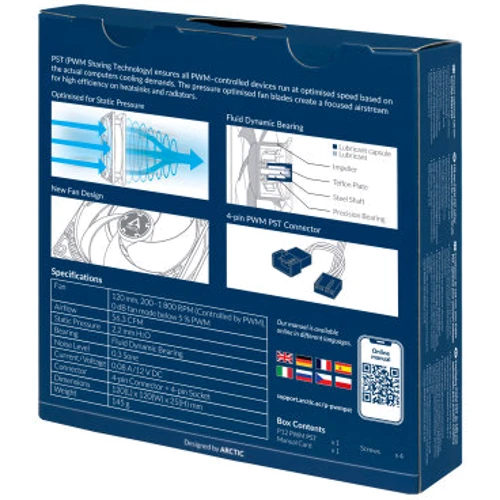 Корпусний вентилятор Arctic P12 PWM PST для ПК – потужний повітряний потік та високий статичний тиск при низькому рівні шуму. Підтримує керування методом ШІМ-модуляції та технологію PST. Має тривалий ресурс. Установка – корпус ПК, процесорний кулер.