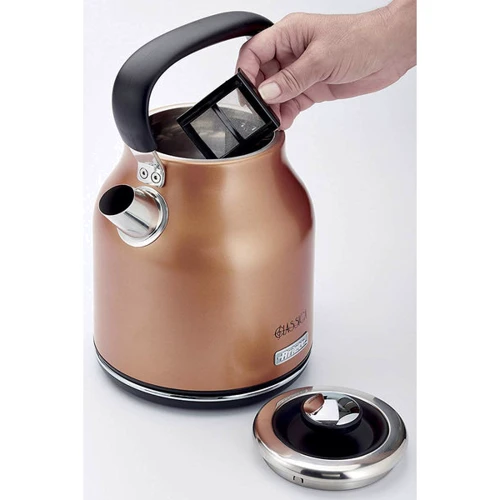 Електричний чайник лінії Classic з його витонченим дизайном привносить витонченість і спокій, необхідні для того, щоб насолодитися кращим чаєм і трав'яним настоєм. Завдяки вбудованому і легко миється фільтру, системі автоматичного відключення і ергономічній ручці цей чайник стає безпечним і простим у використанні компаньйоном, ідеально відповідним для того, щоб супроводжувати в моменти релаксу.