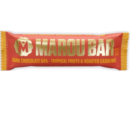 чорний шоколад (78,5%), какао-крупка, тростинний цукор, какао-масло, смажений кеш'ю (10%), сушене манго (5%), сушений маракуйя (5%), сушений кумкват (1,5%). Вміст какао: 64%.