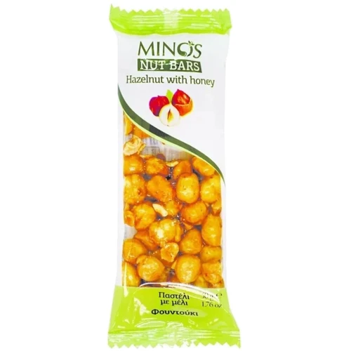 Батончик із суміші горіхів з медом Minos надає можливість харчуватися здоровою та натуральною їжею всім охочим. Суміш з цілісних і подрібнених горіхів і меду має корисні властивості і привабливий смак. Горіхи – дуже поживний продукт, тому для того, щоб підкріпитись, достатньо буде одного такого батончика.