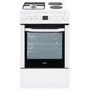 Комбінована плита. Конфорки: 2 газ. і 2 ел. Підпал конфорок: інтегрований. Тип духовки: багатофункціональна. Об'єм духової шафи: 55 л. Клас енергоспоживання: А. Гриль. Кришка: скляна. Габарити (ВхШхГ): 85х50х60 см. Колір: білий.