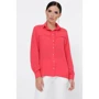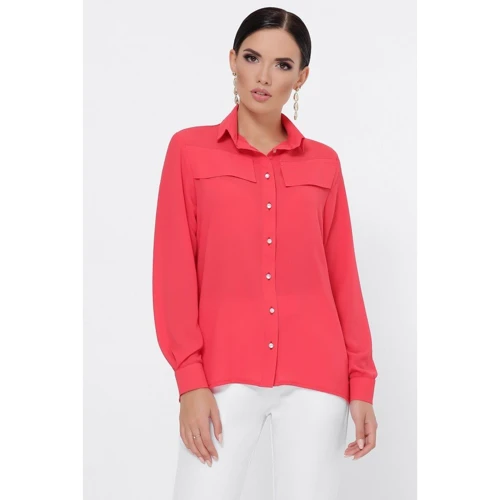 Однотонна блуза сорочкового крою, декорована клапанами на грудях. Блузка зшита з легкого креп-шифону.