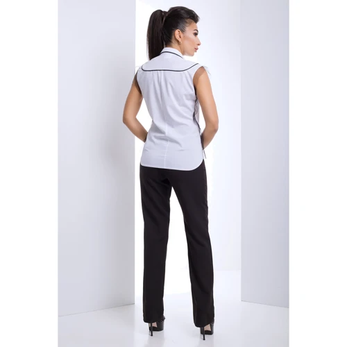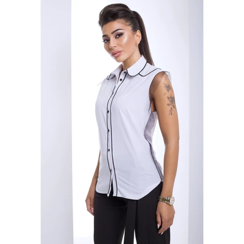 Легка, жіноча блуза Романа від дизайнерів Luzana володіє стильним виконанням. Сітка чорного кольору бездоганно вписується в дизайн виробу і є ефектним його прикрасою. Блуза з коміром сорочкового типу і оригінальною окантовкою контрастного кольору. В якості додаткового декору використані красиві гудзики-застібки.