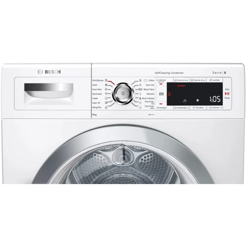 # Простота обслуговування Самоочисний конденсатор - велика перевага цієї сушарки. Завдяки тому, що він автоматично очищається до чотирьох разів у процесі сушіння, кожен цикл сушіння забезпечує максимальну вихідну потужність, ідеальні результати сушіння та водночас підтримує економічну роботу.