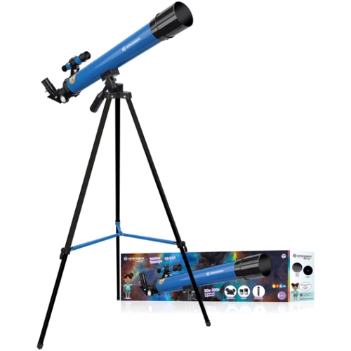 Телескоп із ручним керуванням Bresser Junior 50/600 AZ оснащений достатньою оптикою для спостереження кратерів на Місяці діаметром 8 км, зірок слабкого світіння (до 10,5 зіркових величин), Сатурна, Урана та Нептуна у вигляді зірок, полярних шапок Марса. Навіть деякі туманності, що знаходяться на відстані до 1500 світлових років, стануть доступними для ока дитини у вигляді світлих концентрованих плям за наявності хороших погодних умов. З рівним успіхом телескоп може бути використаний для спостереження визначних пам'яток міста з великих відстаней. Телескоп комплектується азимутальним монтуванням, яке простіше в управлінні і менше за вагою, порівняно з екваторіальним, що не мало важливо для дитини. З її допомогою можна спостерігати як за наземними, і за небесними об'єктами. Діагональне дзеркало, що входить у комплект, змінює хід променів на 90 ° і дозволяє зручно спостерігати об'єкти, що знаходяться на значній висоті над горизонтом.