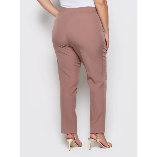 Штани Коррадо високої посадки зі стрілками. Притачний пояс застібається на гудзики і блискавку, ззаду еластична вставка. Косі кишені з боків, від пояса защипи.