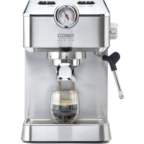 Кавоварка CASO ESPRESSO GOURMET - корпус з нержавіючої сталі з ніжками, потужний насос Ulka на 19 Бар. Високоякісний портафільтр із нержавіючої сталі з чорною ручкою, практичний манометр показує тиск заварювання. Чотири зручні сенсорні кнопки з білим підсвічуванням, автоматична функція заварювання сталі для приготування молочної пінки та попереднього підігріву чашок. Вбудований лоток для підігріву чашок. Прозорий резервуар для води, що знімається (1.5 л). Знімний піддон із нержавіючої сталі з вбудованим поплавцем для легкого очищення.