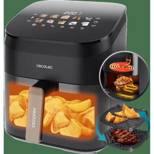 Особливості | Система розподілу гарячого повітря, Оглядове вікно, термостат, Сумний контейнер (чаша), Захист від перегріву, дисплей, антипригарне покриття, Автоматичне вимкнення |