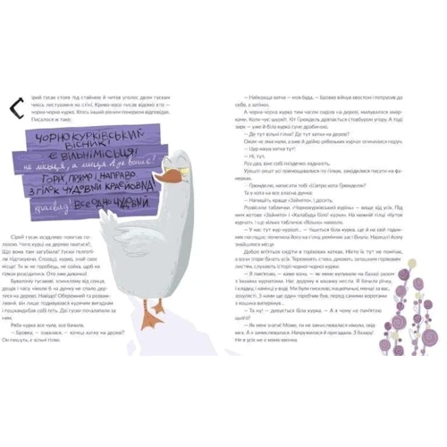Нова книжка відомої української письменниці Галини Вдовиченко — авторки популярних дитячих книжок «36 і 6 котів» та «36 і 6 котів-детективів» — про те, що звичайна домашня курка може виявитися геть непересічною птахою! Вигадницею неймовірних історій та нових забав, редакторкою «Чорнокурківського вісника», танцівницею фламенко, мешканкою високого горіха…