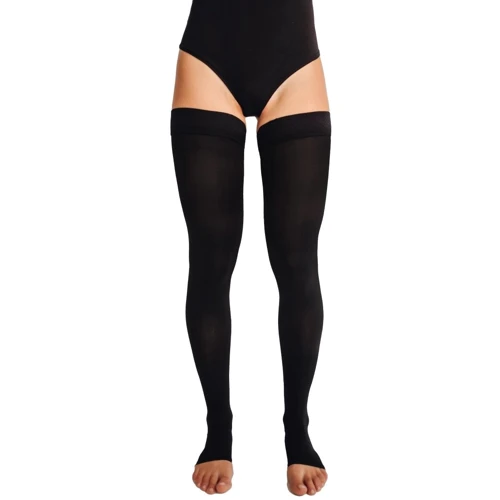 Медичні компресійні панчохи з відкритим носком 9230 - виготовлені з медичного компресійного трикотажу, забезпечують ідеальну посадку та завдяки помірному рівню компресії можуть бути рекомендовані для носіння на початкових стадіях захворювань вен. Градуйована компресія ефективно розподіляє тиск знизу вгору, найбільший тиск у ділянці гомілки, який поступово зменшується, що сприяє покращенню циркуляції крові.