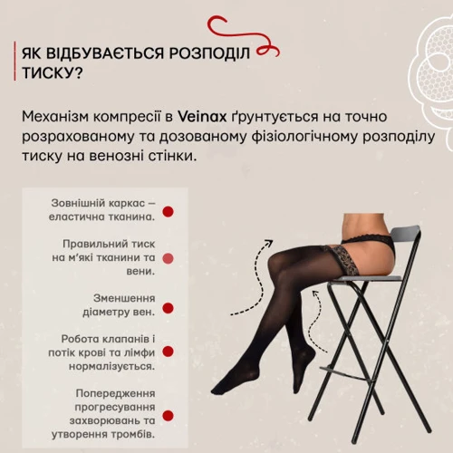 Veinax поєднує відмінні компресійні властивості, анатомічний дизайн та привабливий зовнішній вигляд.