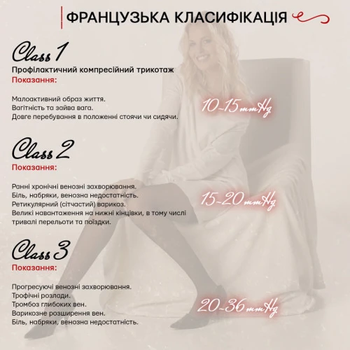 Клінічні показання використання 2 класу компресії -15-20 мм рт. ст.;