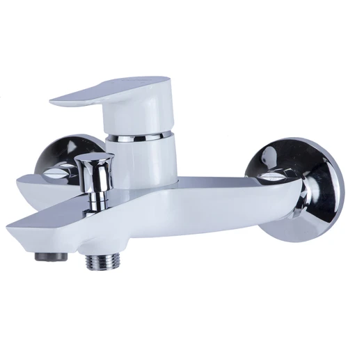 Представлений тут змішувач настінний змішувач для ванни Garda BC-1C121W від Corso, виготовлений з високоякісної латуні з покриттям білого і блискучого кольору, має стаціонарний виливши з виносом в 17.4 см, оснащується перемикачем ванна / душ і відведенням для під'єднання душового шланга під діаметр 1/2 ".
