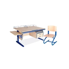 Стіл універсальний трансформований СУТ.15-01 (120 см * 88 см) + Полка задня СУТ.15.210 (2 шт.) + Стілець СУТ.01-01 (фанера) клен / синій