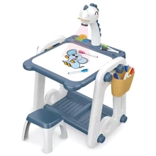 Столик для творчості з проектором 3в1: стільчик, звук, маркери, губка, диски, синій (YM 59)