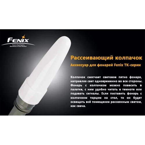 Основне призначення вироби - перетворення узконаправленного променя ліхтаря в розсіяний світло. Зручний і необхідний аксесуар для туристів і любителів активного відпочинку на природі. Підходить для TK11, TK12, TK15, TA20, TK21.