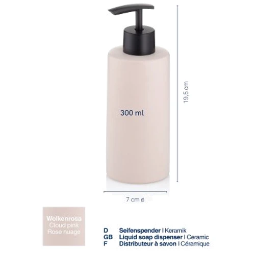 Стильний дозатор для мила Kela Matsi об'ємом 300 мл виготовлений з кераміки. Палітра ніжних кольорів дозволяє вибрати оптимальний варіант, який чудово впишеться у дизайн вашого інтер'єру. Зверніть увагу на інші аксесуари лінійки KELA Matsi, щоб зібрати стильну колекцію для ванної кімнати або туалету.