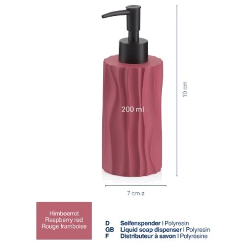 Оригінальний дозатор для мила KELA Merida об'ємом 200 мл виготовлений із полірезину. Полірезин - це новий полімерний матеріал, який виготовляють із суміші кам'яної крихти, смоли та барвників. Якщо вам важливі незвичайний дизайн та гігієна, то вироби з полірезину це те, що вам потрібно.