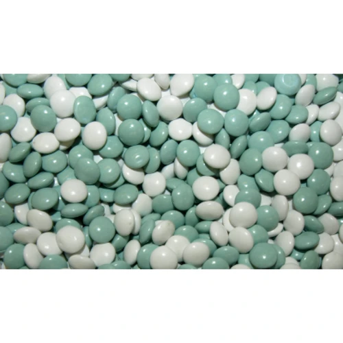Тростинний цукор-сирець, какао терте 25.5%, какао-олія 3.2%, рисовий крохмаль, глюкозний сироп, олія м'яти перцевої, барвник харчовий: спіруліна, емульгатор: лецитини соняшнику, агент глазурі: карнаубський віск. Какао 50% мінімум у темному шоколаді.