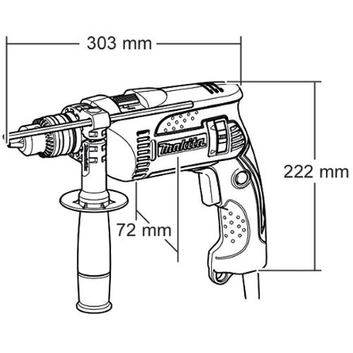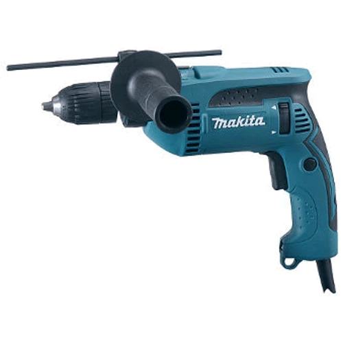 Ударний дриль Makita HP1641KX2 є професійним інструментом для свердління з ударом, свердління і загвинчування. Нова система реверсу продовжує термін служби вугільних щіток, зберігає потужність при роботі в режимі реверсу. Конструкція корпусу дрилі дозволяє зручно тримати її однією рукою при виконанні складних стельових робіт. У комплект поставки, крім ударної дрилі Makita HP1641KX2 входить також обмежувач глибини, чемодан для транспортування і набір свердел D-4620.