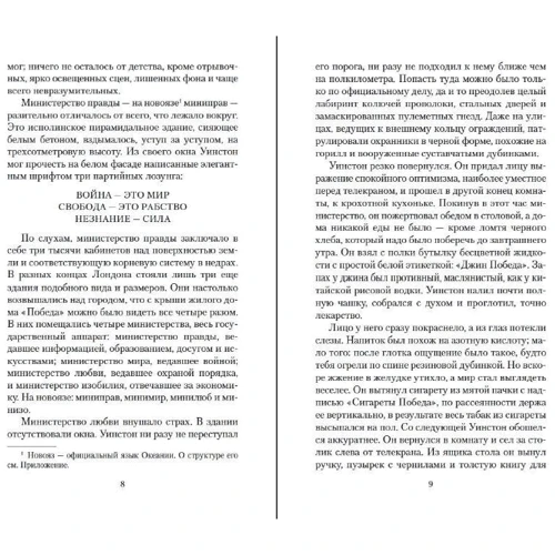 Зображене автором суспільство майбутнього засноване на узурпації влади в руках однієї партії, єдино вірній ідеології, абсурдній пропаганді, тотальному контролі суспільного та приватного життя і насильницькому придушенні будь-якого інакомислення; місце і час дії роману - вигадана країна Океанія 1984 року, проте в образі цієї держави легко впізнаються реалії радянського ладу 1930-1940-х років та інших диктаторських режимів - бо, на думку Орвелла, всі диктатури однакові.