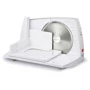 Легкий і компактний слайсер з серії Delicious collection знадобиться там, де важливі швидкість і точність різання. Плавне регулювання нарізки від 0 до 15 мм дозволяє легко змінювати товщину скибочок і регулювати їх відповідно до ваших потреб, а знімний диск з нержавіючої сталі діаметром 17 см гарантує виняткову точність і надійність. Завдяки двоступінчастому перемикачу, знімному візку з захистом для пальців, притискній подушці і нековзним ніжкам використання пристрою надзвичайно безпечне.