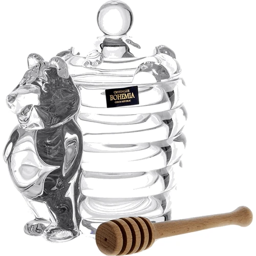 Ємність для меду Bohemia Ведмідь 5K879 / 99Q26 / 150 - це ємність з кришкою з високоякісного прозорого скла. У комплекті є лопатка з дерева за допомогою якої можна легко і акуратно покласти мед на порційну тарілку. Вона прекрасно підходить для зберігання і подачі духмяного меду до столу.