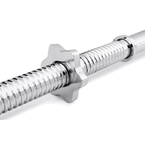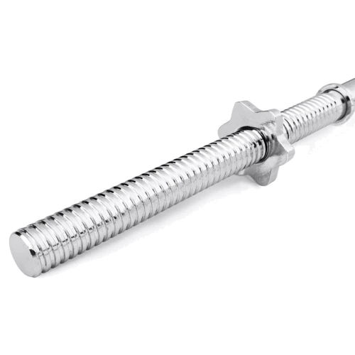 #Різьбова гайка: Гриф оснащений затискними гайками з різьбленням, які дозволяють рівномірно притискати диски, щоб вони не дряпалися і не хиталися.