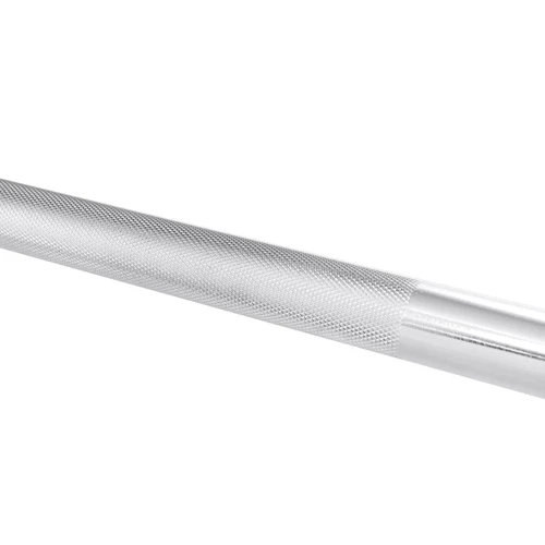 #Різьба та рифлення: Гриф виготовлений із твердих матеріалів (додатково хромований). Кінці представленого грифа різьбові, тому розміщення дисків на штангу є блискавичним. Також цей гриф має рифлені частини для захоплення зі спеціальними поперечними розрізами - така конструкція гарантує повне зчеплення і, отже, ефективніше тренування. Блокування дисків на грифі відбувається за допомогою гайки.