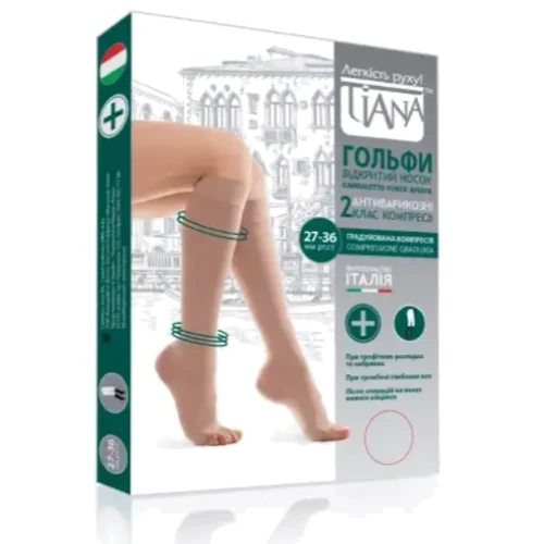 Лікувальний медичний компресійний трикотаж TiANA відновлює венозний відтік від нижніх кінцівок, а саме збільшує швидкість кровотоку у венах та покращує відтік крові від тканин. Тиск на кісточці 27-36 мм рт.ст. використовується при виражених проявах варикозної хвороби, численних вузлах на венах, при варикозній хворобі з трофічними розладами та набряками, лімфовенозної недостатності на венах нижніх кінцівок, тромбозі глибоких вен та посттромбофлебітичної хвороби.