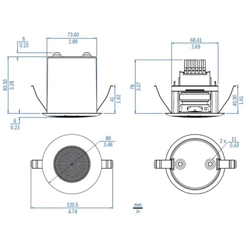 Розміри: 88 мм Монтажний отвір: 76 мм