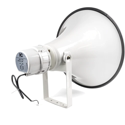 Рупорний гучномовець захищений від погодних впливів для використання ззовні приміщень. Корпус рупорного гучномовця вироблено зі сплаву алюмінію, стійкий до вологи та корозії.